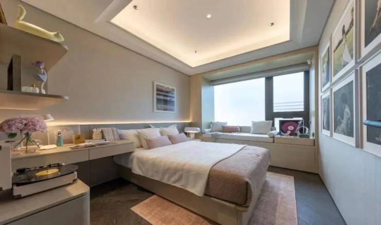 2# 号楼的边套主卧户型配置 270° 环幕飘窗,不仅延伸空间尺度,更将水岸、园景 “框” 成私藏壁画。晨间,阳光透过飘窗铺满床榻;深夜,枕着河风与月光入眠,这是专属建面约 165㎡的 “观景特权”